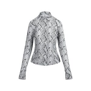 SKIMS CLING MATTE LONG SLEEVE BUTTON UP SHIRT IN CHROME SNAKESKIN PRINT M