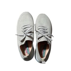 X2- Skechers Air Cooled Memory Foam stretch fit size 8.5 Gray Knit Sneakers