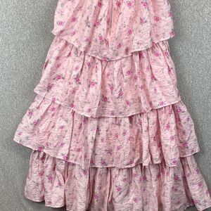 Altar’d State strapless tiered maxi dress Medium pink floral cottagecore roses