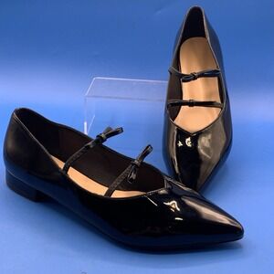 Lovirs Women's Black Double Bow Pointed Toe Faux Patent Leather Flats - Size 10