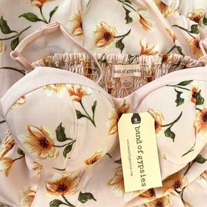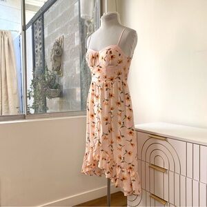 BAND OF GYPSIES NWT Blush Floral Corset Bustier Button Down Midi Dress, Size XS