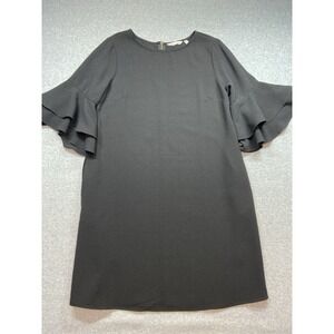 Soft Surroundings Dress Womens Medium Black Ruffle Bell Sleeve Shift Knee Length