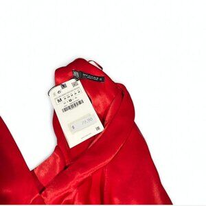 Red Satin V-Neck Long Formal Dress High Slit Size M Prom 2026 Homecoming