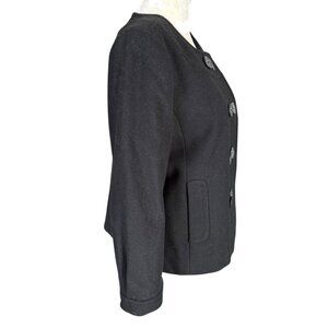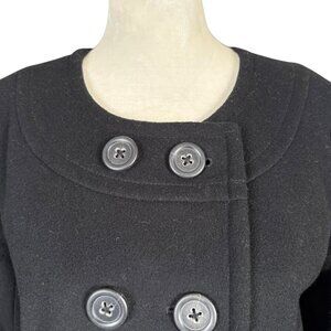 Women's J. Crew black fully lined double breasted long sleeve coat. No size tag but I believe this is a small petite, but please see measurements below and ask me any questions you would like. This has button sleeves. Excellent like new condition and from a smoke free pet free home. Quick shipper!