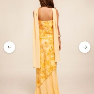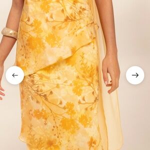 Yellow floral print three tier layer strapless dress. Comes with matching scarf.
