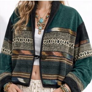 Vintage Southwestern Aztec Blanket Jacket Boho Western Cropped L