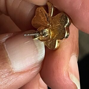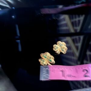 Avon Four-Leaf Clover Green Stone Gold-Tone Post Earrings Lucky Charm EUC