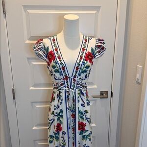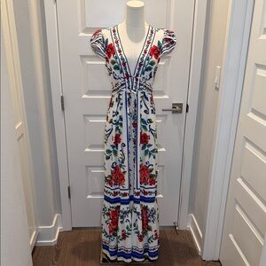 FARM Rio Floral Long Dress with Red and Blue Size S