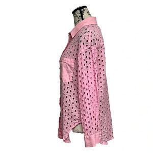 Lena Pink Sheer Eyelet Crochet Button Up Blouse Barbie Preppy Coastal M Y2k