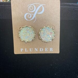 Chic gold earrings with shimmering iridescent accents. Ideal for any occasion. Designed by Plunder. Excellent condition NWT