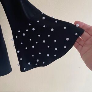 Joseph Ribkoff Top Woman 10 Black Pearl Accent Bell 3/4 Sleeves Boat Neck 191148