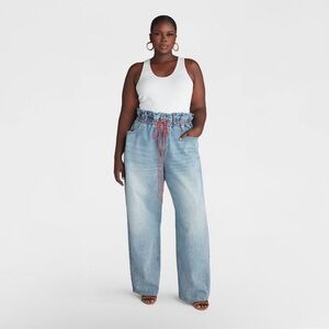Statement making denim is totally our thing and this paper bag jean speaks for itself. Designed with an ultra-high elasticized waist that features a yarn-dyed drawcord belt, this jean is complete with a barrel leg fit and classic five-pocket styling. Style with a cropped polo or tucked tank to complete the look.