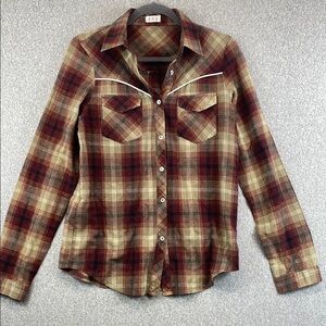 POL western button up down shirt womens S tartan plaid coastal cowgirl cotton