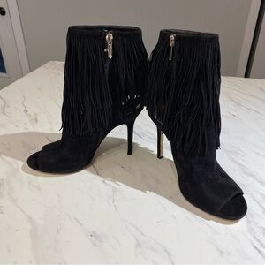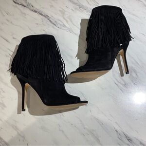 Sam Edelman Arizona fringe Booties peep toe black womens size 8