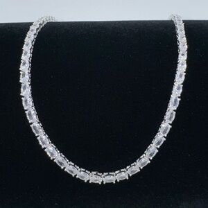 The necklace features a secure box clasp with double safety hinges for added security and confidence. Sophisticated, radiant, and beautifully eye-catching, this sparkling tennis necklace is perfect for layering or wearing alone for an effortlessly polished statement. ✨