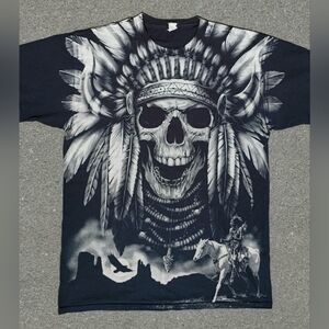 Vtg 2000s Jerzees Skull Native American Graphic T-Shirt L Thrashed Distressed