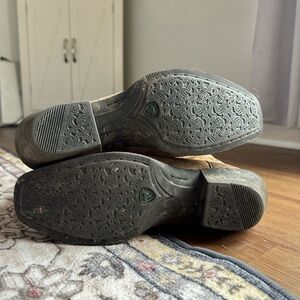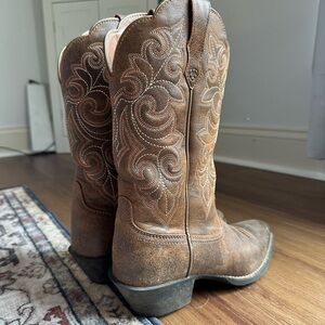 Comfortable Ariat boots with all-day cushioning. Have been worn a good bit. Still plenty of tread on the bottom.
