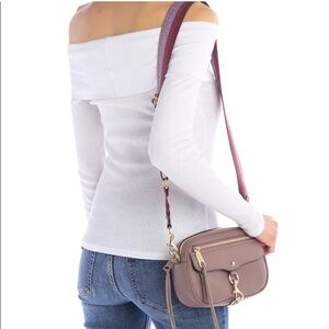 1 slip pocket and 1 zip pocket - Interior features 1 zip pocket, 1 slip pocket, and 6 card slots - Approx. 6" H x 8.5" W x 2" D - Approx. 11-23" strap drop - Imported
