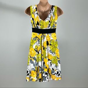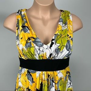 Jones Wear Yellow Green Floral Sleeveless V Neck Dress 14
