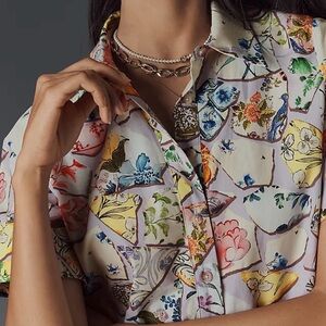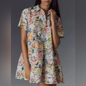 Anthropologie The Pollie Swing Tunic Button Down Floral Mini Dress Size Small