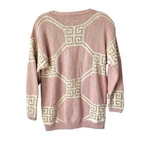 Vintage Hand Knit Cullinane Pink Cream Tan Floral Sweater size medium