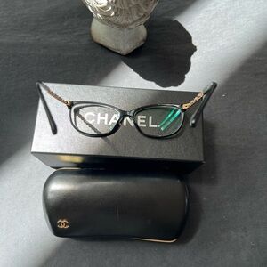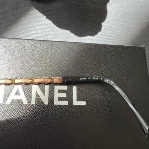 CHANEL 3221-Q Beige Leather Glasses Frames Chain Link EUC Italy Emma Watson