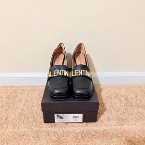 Chic black loafers with striking gold accents. Designed by Valentino for style and comfort. These shoes have only been worn three times and are still in amazing condition! I’m selling because unfortunately they run small and fit like a size 9 to 9 1/2, but otherwise are the perfect closet staple! Originally paid $500 so I’m asking for $200 or best offer! Send me a message if you’re interested!