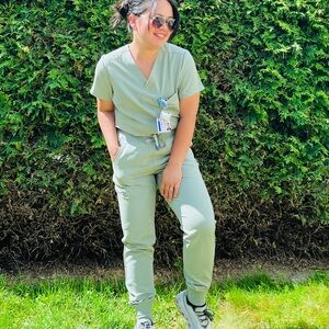 Comfortable and durable oil green scrub set, perfect for healthcare professionals.