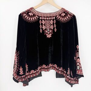 Rare Johnny Was Aurore Embroidered Velvet Bolero Kimono Jacket M Luxe Boho