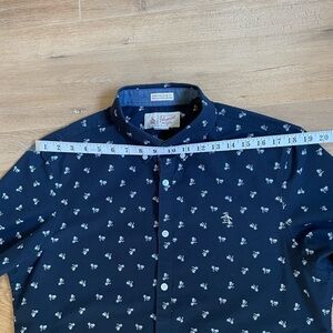Original Penguin Heritage Slim Fit Navy Short Sleeve Button-Up Shirt L