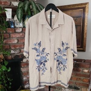 Abercrombie linen shirt, embroidered shirt, floral embroidery, resort shirt, vacation style, beach shirt, casual button up, summer shirt, boho menswear, coastal style, relaxed fit shirt, linen blend top