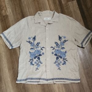 Abercrombie & Fitch Linen Blend Embroidered Button Up Shirt