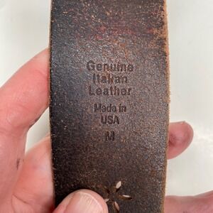 Genuine Italian Leather Floral Perforated Belt Brown Brass Buckle Made in USA M