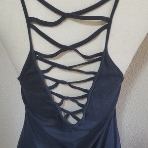 *Main pic is the back of the dress* Can be used as a dress or a cover-up. Comfortable, soft knit. Back has a fun cut out criss cross design.