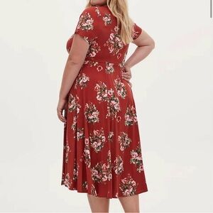 GUS Torrid 4 (24/26) Burnt Orange Floral Dress Buttons and Maxi Skirt Pockets