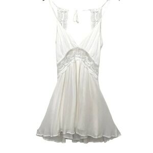 Lulus Crochet Lace Mini Dress Women XS White Boho Open Back Tassel Summer Gauze