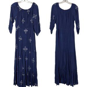 Blue Long Maxi Embroidered Cottagecore Dress in a size Small.