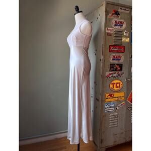 Vintage 90s Champagne Satin Slip Dress | Velvet Bust | Bridalcore gown | Size 3