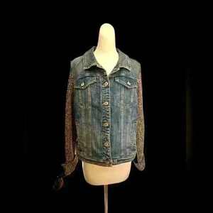 Anthropologie Denim Jacket with Cable Knit Sweater Sleeves