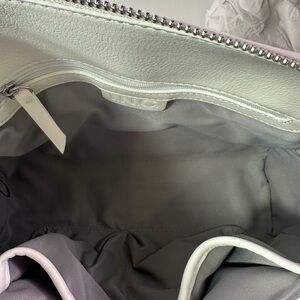 Exterior stud details, back zip pocket; interior zip pocket & 2 slip pockets