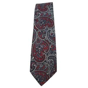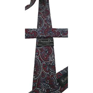 Christian Dior Cravates Paris New York Paisley Tie Red & Gray Vintage Silk