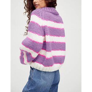 Women's Stripe Pullover Sweater Turtleneck Ribbed Top Chunky Knitwear Purple