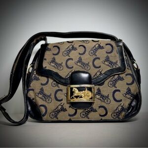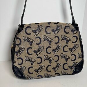 Celine Vintage Canvas Leather Crossbody Bag Purse