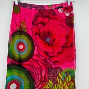 Desigual Maxi Skirt Brenda Floral Semi Sheer Pink EU 40 US Medium Boho Vacation Colorful Vibrant