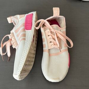 Stylish adidas sneakers with a pink and white design. Comfortable and trendy for everyday wear.