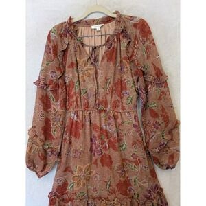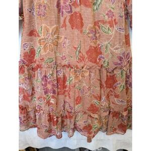 August Sky Women's Size S Floral Tiered Midi Dress Rust Orange Boho