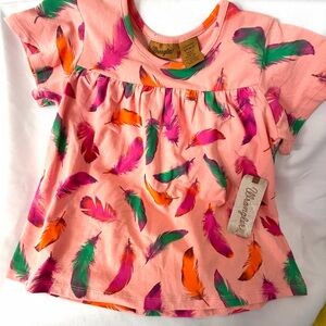 NEW WRANGLER Kids Pink Tee with Colorful Feather Design