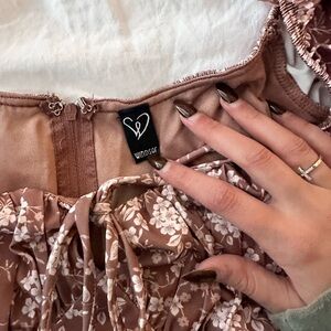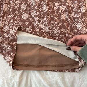 brown and pink/peach/cream floral colored