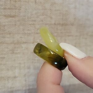 MOSSY JADE AND LEMON CITRINE ACRYLIC RING SET