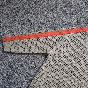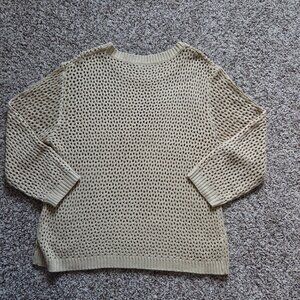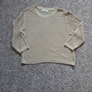 Anrabess Womens Open Knit Beige Sweater Top Size L Sheer Beachy Crew Neck